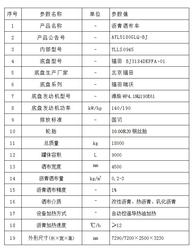 2、YLLS0945(國Ⅵ 標(biāo)配型)全自動瀝青灑布車技術(shù)參數(shù)